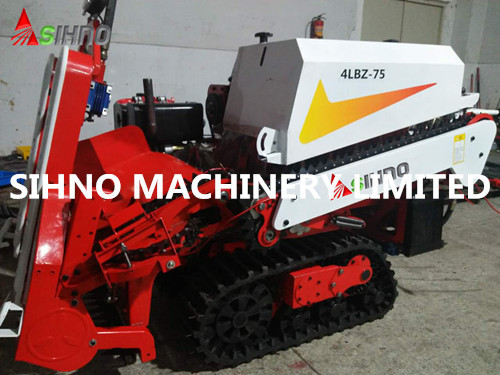 1)This mini half feed rice combine harvester with track is mainly composed of three parts: diesel engine, chassis and the harvester. While the harvester part consists of the following devices and institutions: cutting device, conveying device, threshing device, the rear seat, operating mechanism,control mechanism, and the hydraulic lifting mechanism, etc.